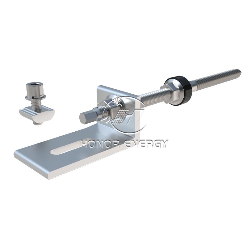 Функционално, Metal Solar Roof L Feet Mount служи като основна връзка между фотоволтаичната скоба и покрива. Хоризонталната част е фиксирана към тялото или повърхността на гредата на покрива, докато вертикалната част е свързана към водещата релса на скобата, осигуряваща поддръжка на товар за фотоволтаичния панел и гарантира, че модулът поддържа стабилна стойка в различни среди.